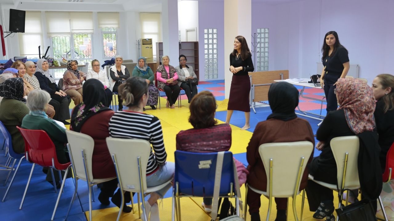 Kadınların şiddet konusunda bilinçlenmesi ve yasal haklarını öğrenmesiyle birlikte güçlenmelerini amaçlayan etkinliklerin ilki Gültepe Semt Merkezi’nde gerçekleştirildi. Merkezdeki kurslara devam eden kadınların katılım gösterdiği “Kadına Yönelik Şiddetle Mücadele ve Güvenlik Planı Oluşturma” konulu atölye çalışmasında, Konak Belediyesi Kadın ve Aile Hizmetleri Müdürlüğüne bağlı “Eşitlik ve Kadın Danışma Birimi”nden Sosyal Hizmet Uzmanı Esra Çakıçı Akgün ile Uzman Halk Sağlığı Hemşiresi Aysun Çobadak Çalt yaptıkları interaktif sunumla bilinç ve farkındalık sağladı. Konak Belediye Başkanı Nilüfer Çınarlı Mutlu, 26 Kasım’da düzenlenecek “Kadına Yönelik Şiddetle Mücadelede Belediyelerin Rolü” temalı panel başta olmak üzere tüm etkinliklere kadınları davet ederek, “Konaklı kadınlarla bir araya geliyor, dayanışmamızı büyütüyoruz. Şiddete karşı dayanışmayla güçleniyoruz. Sesimizi güçlendirmek için tüm kadınları farkında olmaya davet ediyoruz” ifadelerini kullandı.