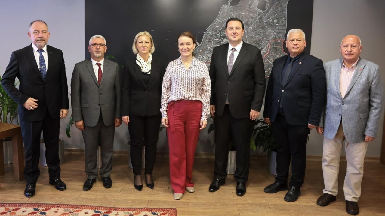 Konak Belediye Başkanı Nilüfer Çınarlı Mutlu, bir dizi ziyaret kapsamında kente gelen Makedonya Türk Hareket Partisi (THP) Genel Başkanı Enes İbrahim ve heyetini makamında ağırladı. THP Genel Başkan Yardımcısı Aylin Emin Skoro ve MYK Üyesi Erol Ruşid’in yanı sıra Konak Belediyesi Meclis Üyesi Birol Özkardeşler, Karşıyaka Belediyesi Meclis Üyesi İlhami Yıldız ve Balkan Strateji Geliştirme ve İş Birliği Derneği Başkanı Hüseyin Karataş’ın da yer aldığı ziyarette ortak tarihsel kökler ve sahip olunan güçlü değerler üzerine verimli bir görüşme gerçekleştirildi. Başkan Mutlu ve Genel Başkan İbrahim, akşam saatlerinde ise Makedonya göçmen derneklerinin başkanları ile belediye meclis üyelerinin de katıldığı yemekte yeniden bir araya geldi. Samimi bir atmosferde gerçekleşen buluşmada, yerel yönetimlerle ilişkiler ve kültürel bağların korunmasına yönelik çalışmalar değerlendirildi.