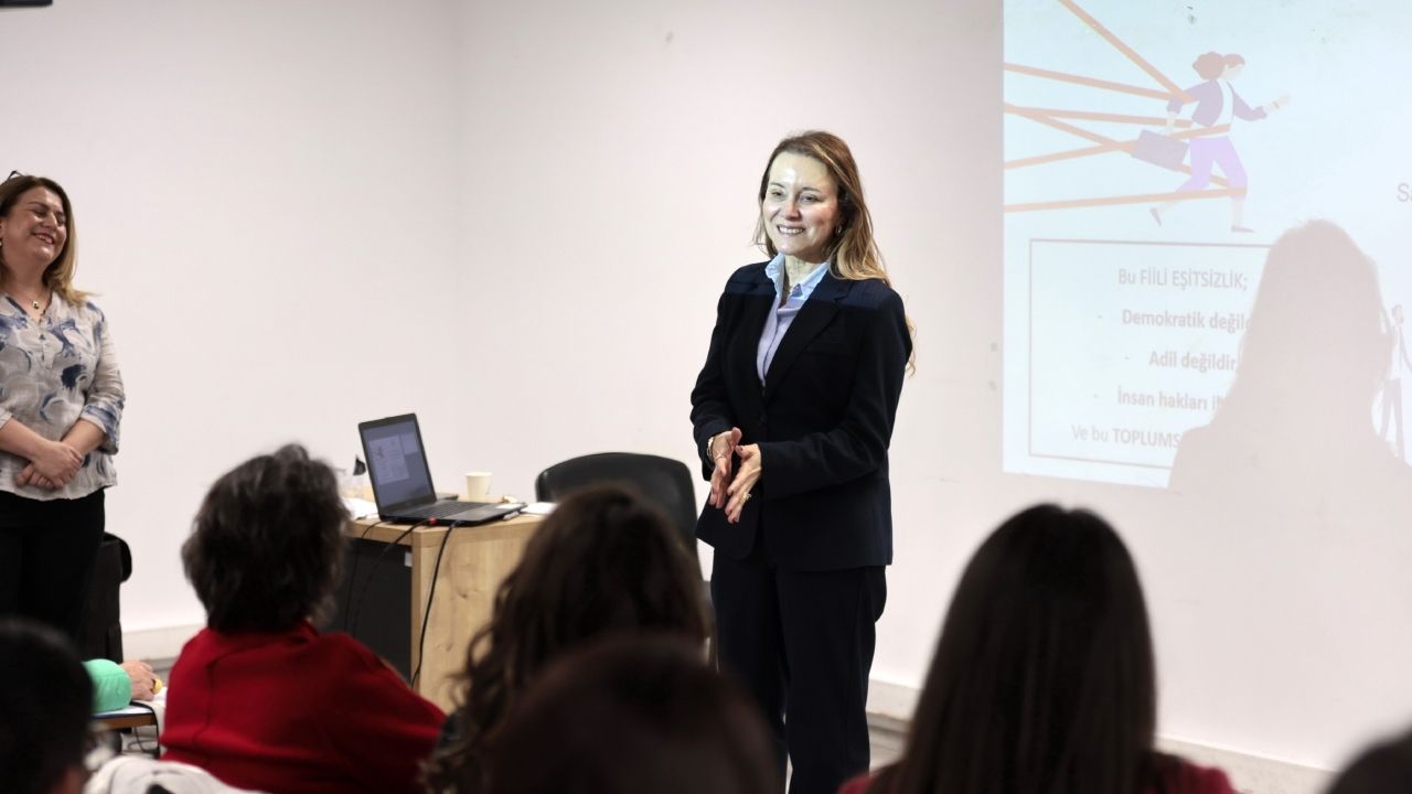 Toplantıda toplumsal cinsiyet eşitliği, ayrımcılık, yerel yönetimlerin bu alandaki sorumlulukları ve YEEP’in taşıdığı kritik öneme ilişkin kapsamlı bir sunum yapan Avukat Özlem Durmaz, Başkan Nilüfer Çınarlı Mutlu’ya göreve geldiği günden bu yana eşitlik alanında ortaya koyduğu örnek çalışmalardan dolayı teşekkür etti.