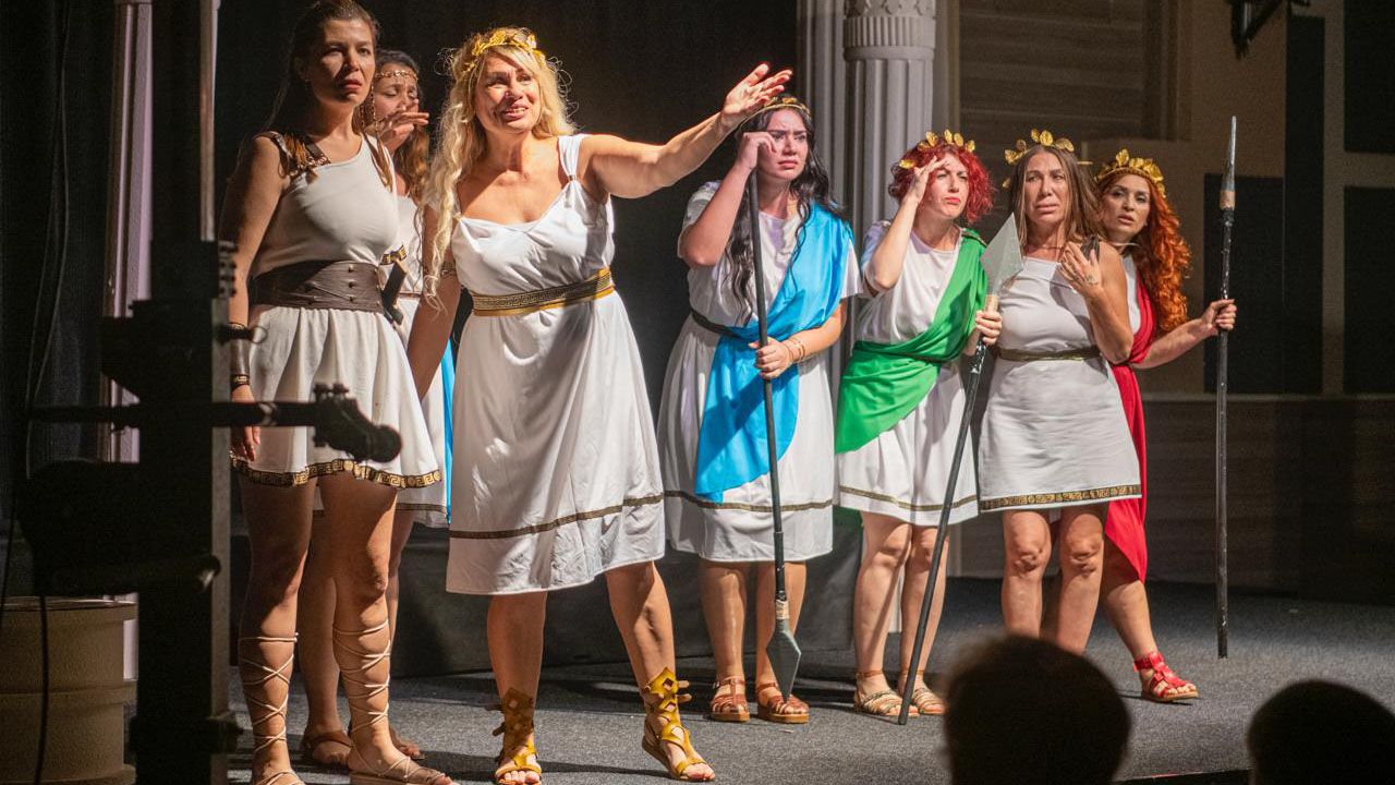 Kuşadası Belediyesi 2024-2025 dönemi yetişkin tiyatro kursiyerleri, yıl boyunca aldıkları eğitimin meyvesini sahnede topladı. Antik Yunan’ın ünlü yazarı Aristophanes’in “Lysistrata – Kadınların Savaşı” adlı eserinden uyarlanan tek perdelik oyun Pera Düğün, Organizasyon ve Kültür Merkezi’nde izleyiciyle buluştu.