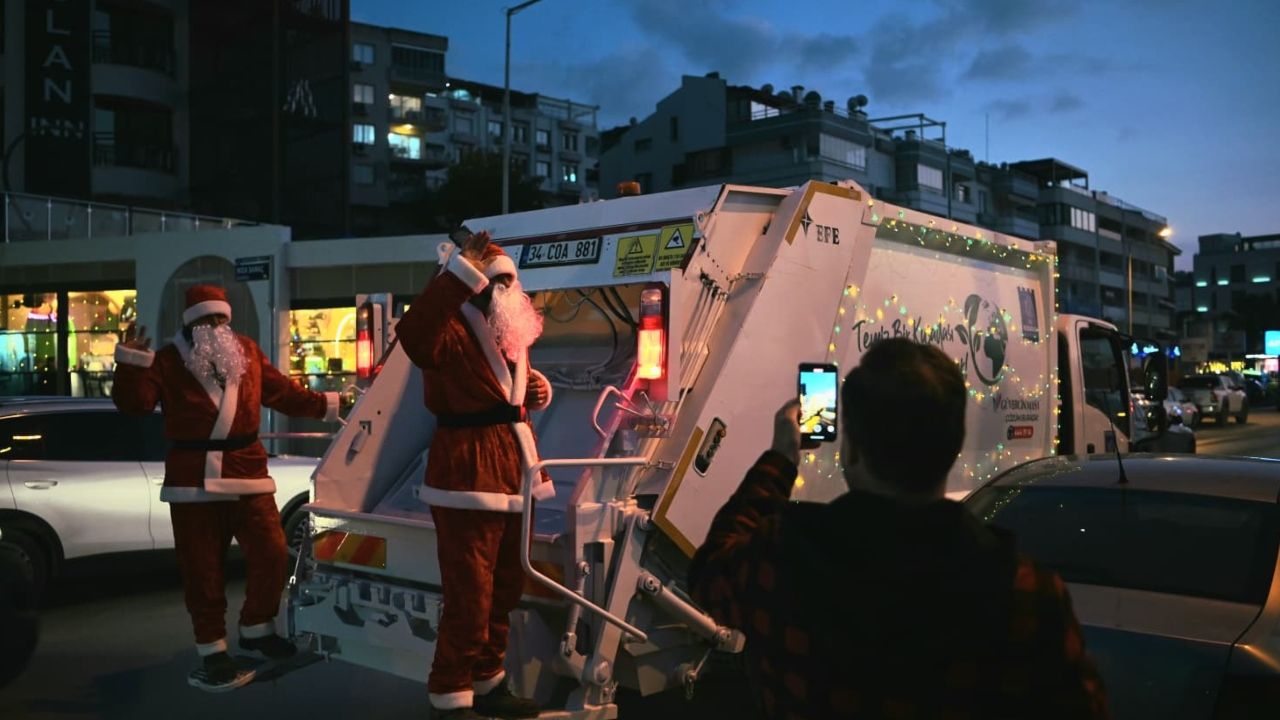 Kuşadası Belediyesi, yeni yıl öncesinde çevre temizliği konusunda farkındalık oluşturmak amacıyla dikkat çekici bir etkinlik gerçekleştirdi. Temizlik İşleri Müdürlüğü’ne bağlı çöp kamyonları ışıklarla süslenerek kent merkezinde tur atarken, Noel Baba kostümlü belediye personeliyle hem çocuklara neşe verildi hem de çevre bilincine yönelik mesajlar paylaşıldı.