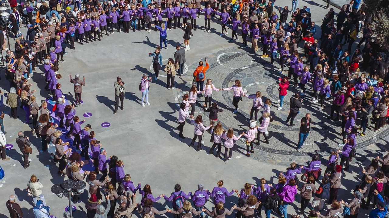 Renkli görüntülere sahne olan kortejde kadınlar, ellerinde taşıdıkları mor renkli dövizler ve attıkları sloganlarla Türkiye’de yaşanan kadın cinayetlerine, kadına yönelik şiddete ve İstanbul Sözleşmesi’nin önemine dikkat çekti. Kortejin ardından Kuşadalı kadınlar el ele verip, El Heykeli önünde Yaşam Ağacı’ figürü oluşturdu.