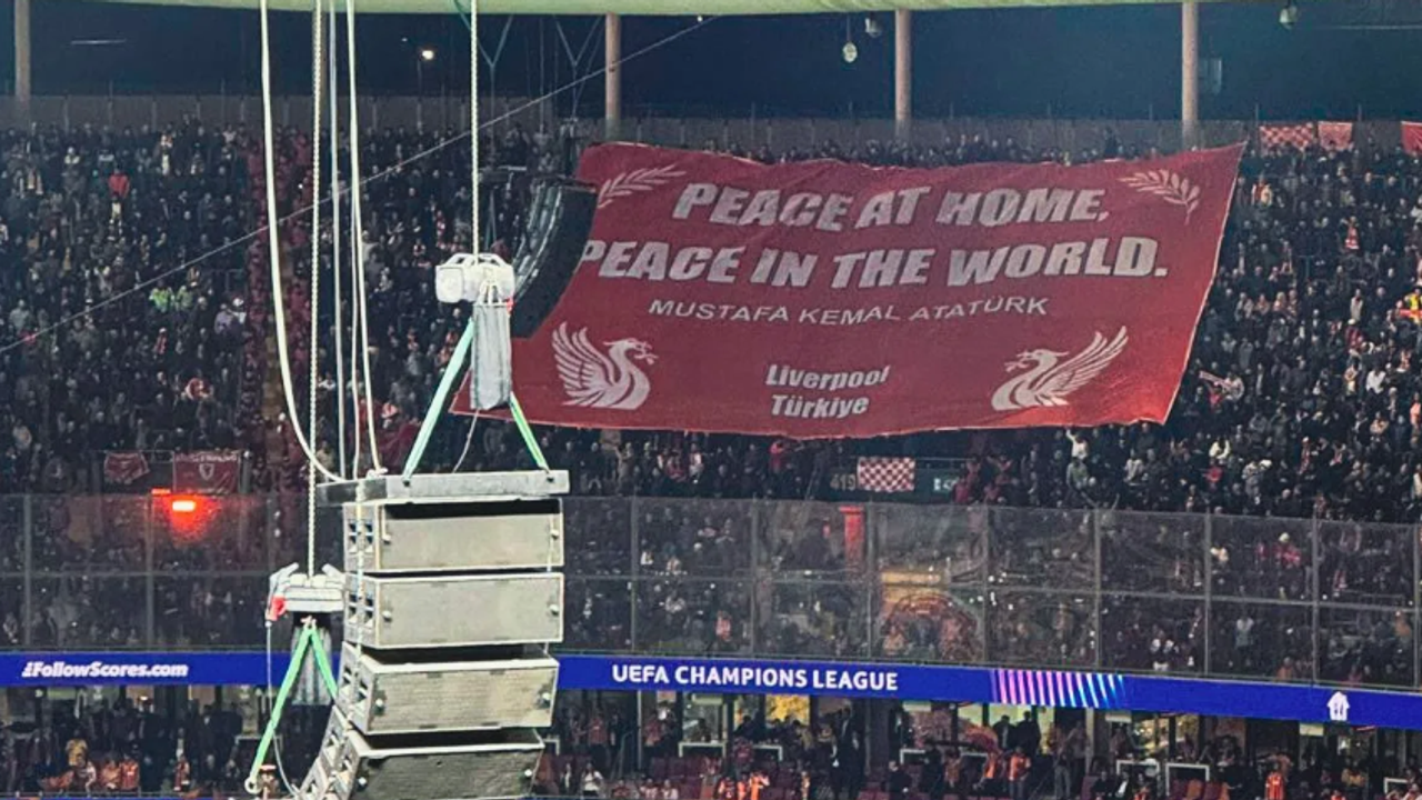 İngiliz ekibin taraftarları, Gazi Mustafa Kemal Atatürk’ün o ünlü sözünü dev bir pankart olarak açtı.