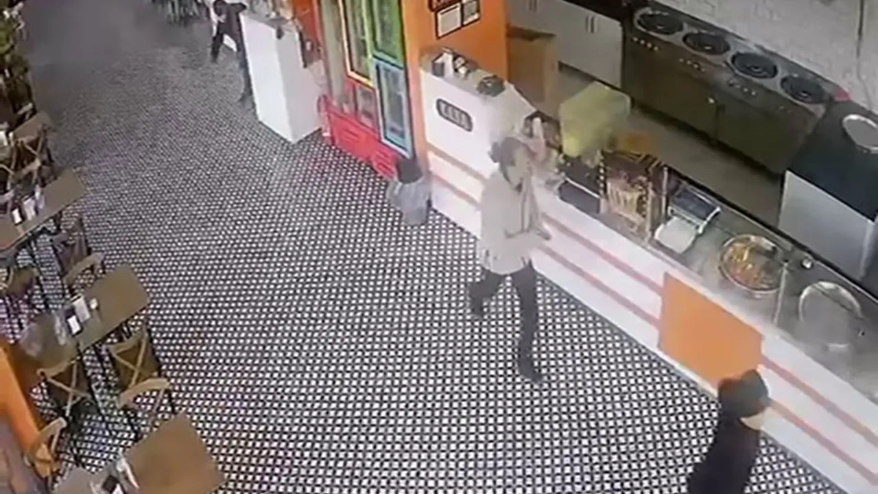 5.2 büyüklüğündeki deprem bir iş yerinin güvenlik kamerasına saniye saniye yansıdı. Görüntüde bekleyen müşteri ve işyeri çalışanlarının kaçma anı ve işyerinin sallanma görüntüsü depremin büyüklüğünü ortaya koydu.
