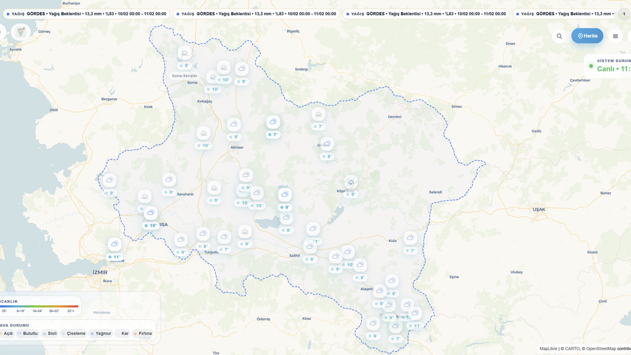 Sistem yalnızca üreticilere değil, günlük yaşamını hava koşullarına göre planlamak isteyen tüm Manisalılara da hizmet veriyor. Mahalle ve ilçe düzeyinde hava durumunu takip edebilecek olan vatandaşlar, aktif riskleri harita üzerinden görebilecek, günlük planlarını hava koşullarına göre düzenleme imkanına kavuşacak.