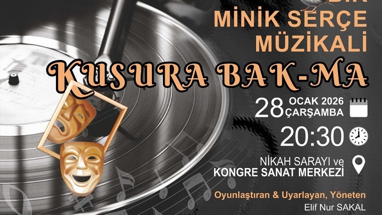 İzmir, Menderes Belediyesi, tiyatro severler için müzikal bir sahneleyecek. Menderes Belediyesi Kültür ve Sosyal İşler Müdürlüğü bünyesindeki kurslardan yararlanan vatandaşlar, eğitmen Elif Nur Sakal’ın sahneleyeceği “Bir Minik Serçe Müzikali: Kusura Bak-ma” adlı müzikali 28 Ocak 2026 günü izleyenlerle buluşturacak.