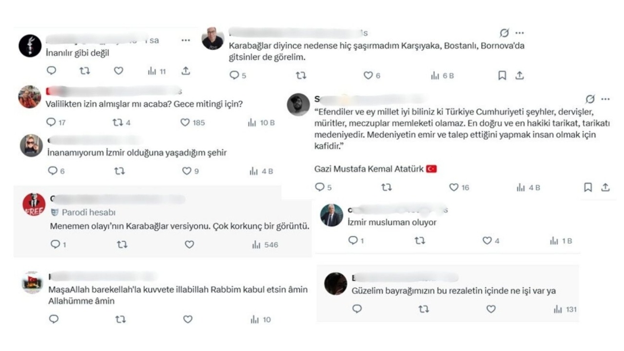 İzmir’de yaşayan ve İzmirli olan sosyal medya kullanıcıları arasında büyük şaşkınlığa sebep olan görüntülere çok sayıda yorum yağdı. Paylaşımlarda, kentte bu denli kalabalık bir grubun toplanması çeşitli yorumlara yol açtı. Sosyal medya kullanıcıları, İzmir’de böyle bir olayın yaşanmasına tepki gösterdi.