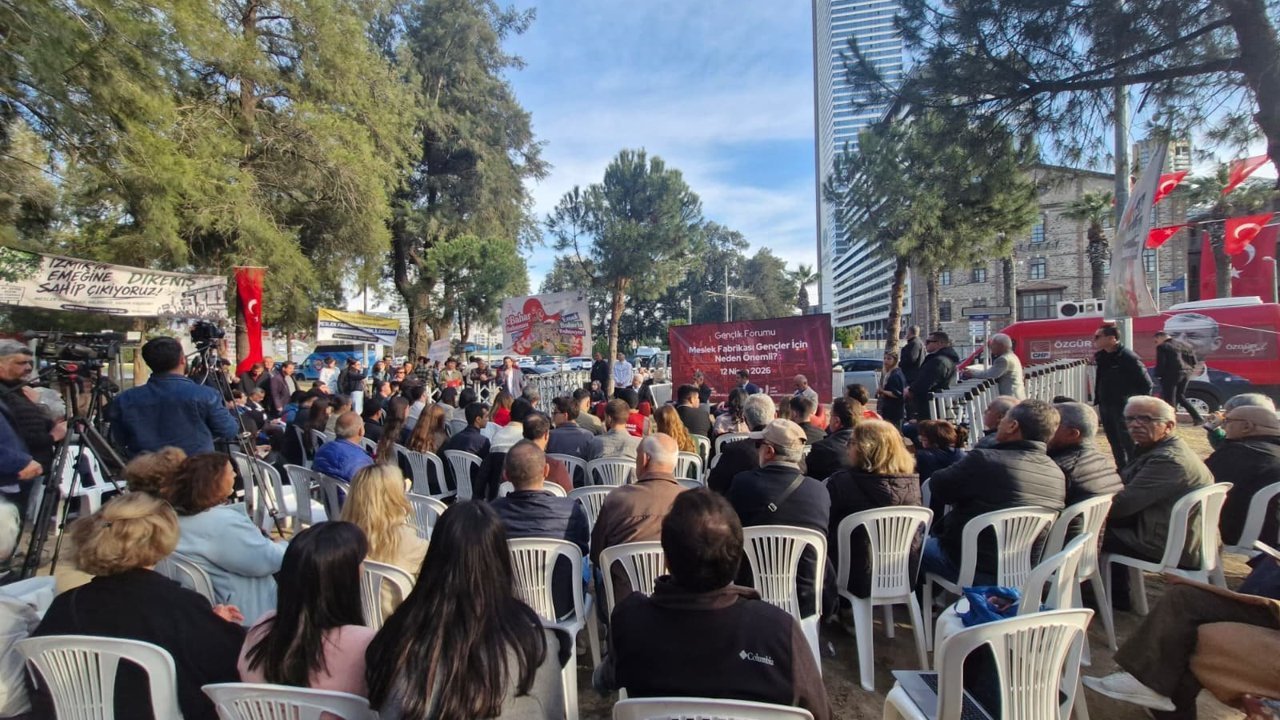İlk olarak söz alan CHP İzmir İl Gençlik Kolları Başkanı Ruhsar Çelik, “Genç arkadaşlar hoş geldiniz. Bugün burada gençlik komisyonu öncülüğünde buluştuk. Mülkiyeti İzBB’ye ait olan Meslek Fabrikası’na Vakıflar Genel Başkanlığı tarafından el konuldu. İçeriye girilmesine izin verilmedi üstelik ortada yargı kararı yokken. Kısacası İzmir halkının malına el konuldu. Biz gençler şunu burası sadece bir bina değil kadınların gençlerin meslek edindiği bir alandı daha önemlisi Mustafa Kemal’in bizlere bıraktığı bir mirastı. Bu gençlik forumu da bunun içindir. Gençlik haksızlık karşısında her zaman sesini yükseltir. Yükseltiyor” dedi.