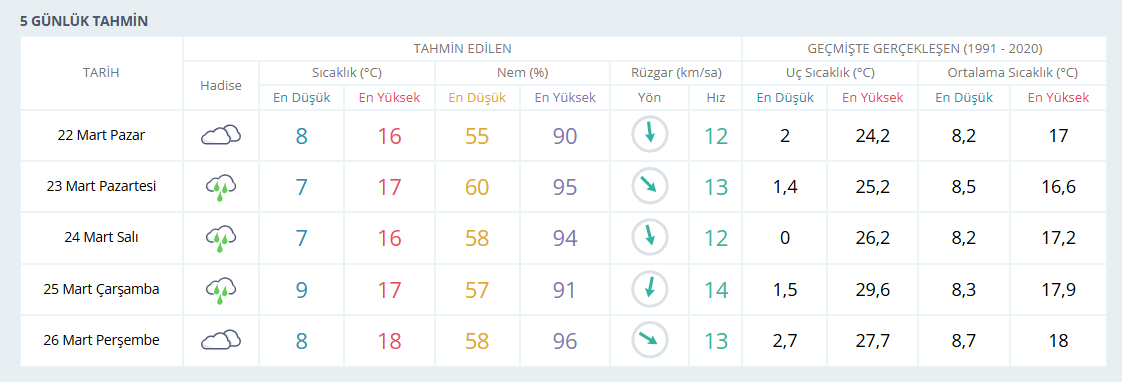 Meteoroloji Genel Müdürlüğü’nün son değerlendirmelerine göre 22 Mart Pazar günü İzmir genelinde parçalı ve çok bulutlu bir hava hâkim olacak. Hava sıcaklıklarının 16 derece civarında seyretmesi bekleniyor. Ancak bu sakin tablo kısa sürecek. 23 Mart Pazartesi gününden itibaren İzmir genelinde yer yer sağanak yağışların etkili olacağı ve hafta boyunca aralıklarla devam edeceği öngörülüyor.