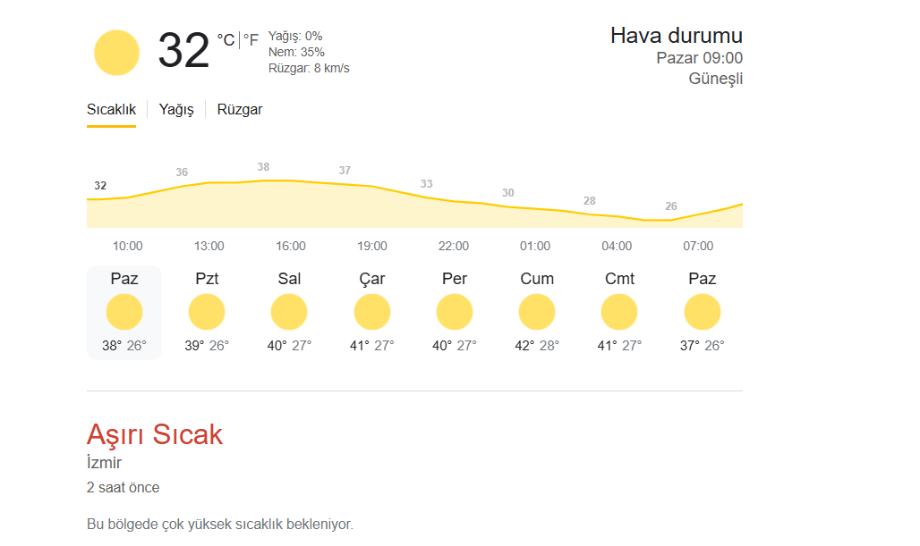 İZMİR °C, 37°C – Az bulutlu ve açık