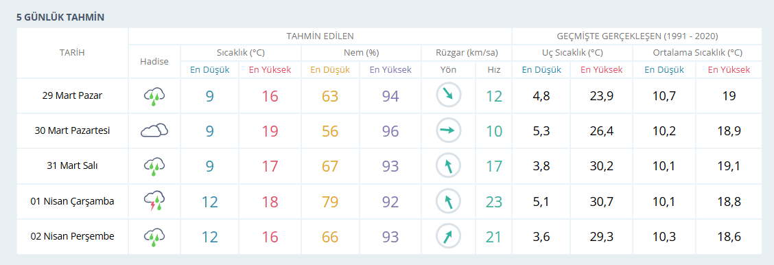 29 Mart Pazar günü itibarıyla İzmir’de hava sıcaklıklarında belirgin bir düşüş bekleniyor. Son günlerde mevsim normallerine yakın seyreden sıcaklıkların yağışla birlikte 15 derece civarına gerileyeceği tahmin ediliyor.