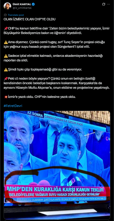 Kartal'ın paylaşımı şu şekilde: “OLAN İZMİR’E OLAN CHP’YE OLDU