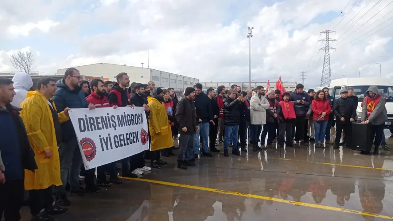 Migros depolarında çalışan işçiler, yaşanılabilir bir ücret zammı ve insanca çalışma koşulları talebiyle günlerdir kararlı bir mücadele yürütüyor. Haklı talepleri için iş yavaşlatan ve iş bırakan işçiler, onurlu direnişleriyle önemli kazanımlar elde etmiştir.
