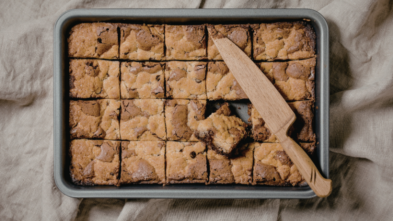 Brownie'nin kakaosuz kardeşi olarak bilinen tahinli blondie, doku olarak kek gibi ama kurabiyeye de benziyor. Tarifte hem kremsilik hem de yoğunluk yakalanarak adeta bir lezzet mühendisliği harikası yaratılıyor.