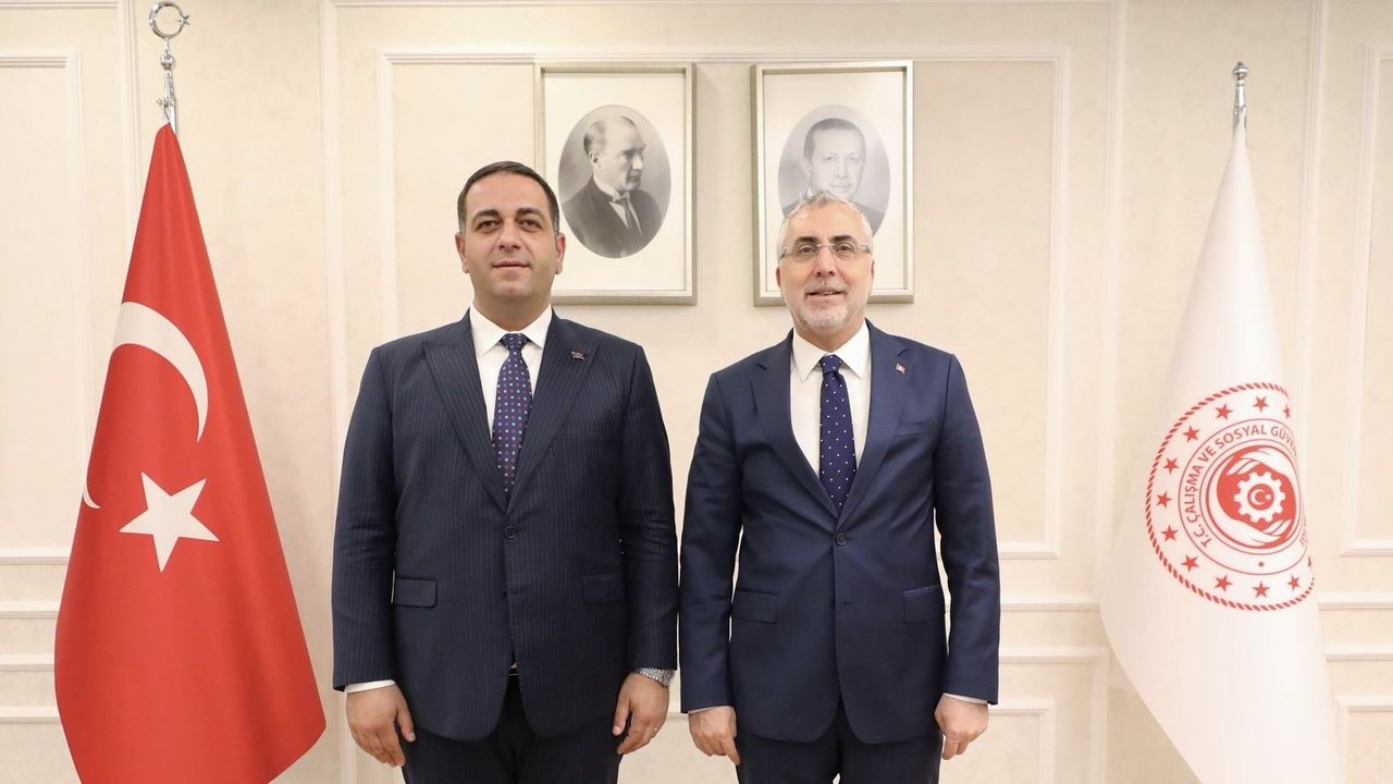 "Çalışma ve Sosyal Güvenlik Bakanımız Sayın Prof. Dr. Vedat Işıkhan’ı makamında ziyaret ederek verimli bir görüşme gerçekleştirdik.