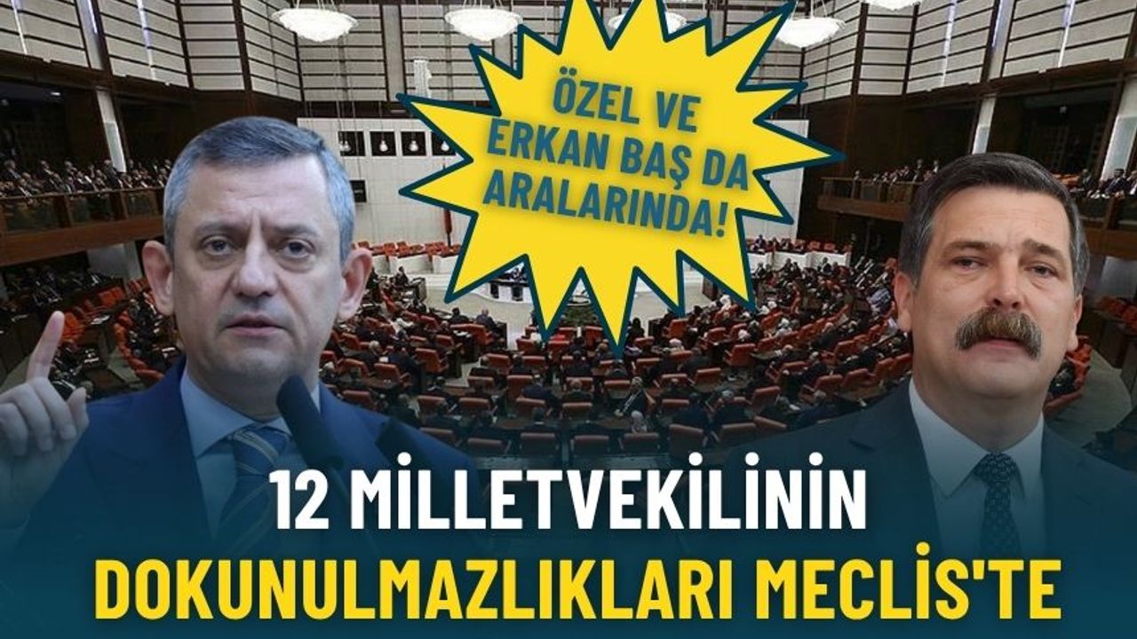 Aralarında CHP Genel Başkanı Özgür Özel, TİP Genel Başkanı Erkan Baş ile CHP Grup başkanvekilleri Ali Mahir Başarır ve Murat Emir'in de bulunduğu 12 milletvekili hakkında 18 dokunulmazlık dosyası TBMM’ye sunuldu.