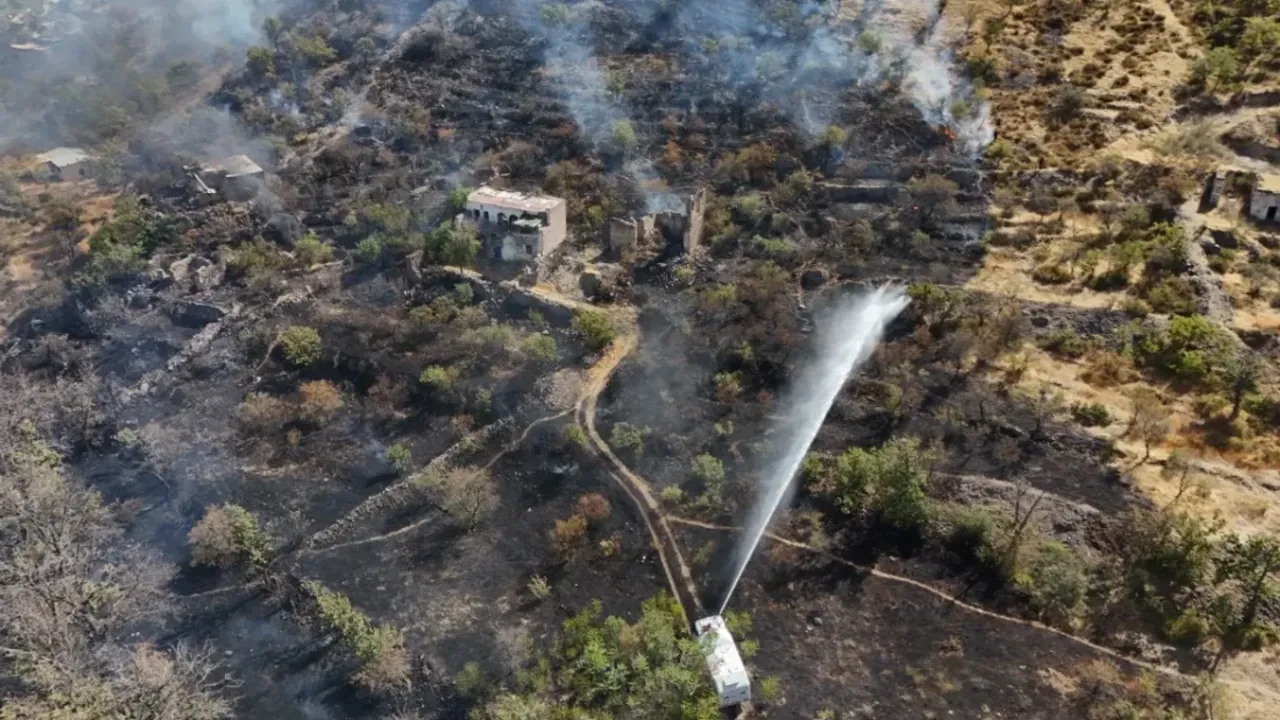 İl Emniyet Müdürlüğü’ne bağlı TOMA araçları da takviye olarak yangını söndürme çalışmalarına katılırken, ekipler alevlerin villalara ulaşmaması için yoğun çaba sarf ediyor.