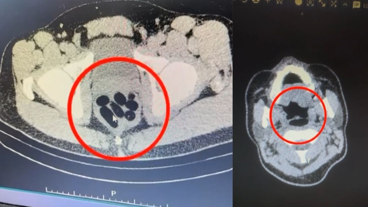 Hastaneye götürülen şüphelinin yapılan röntgen ve tomografi incelemelerinde midesinde çok sayıda yabancı cisim tespit edildi.
