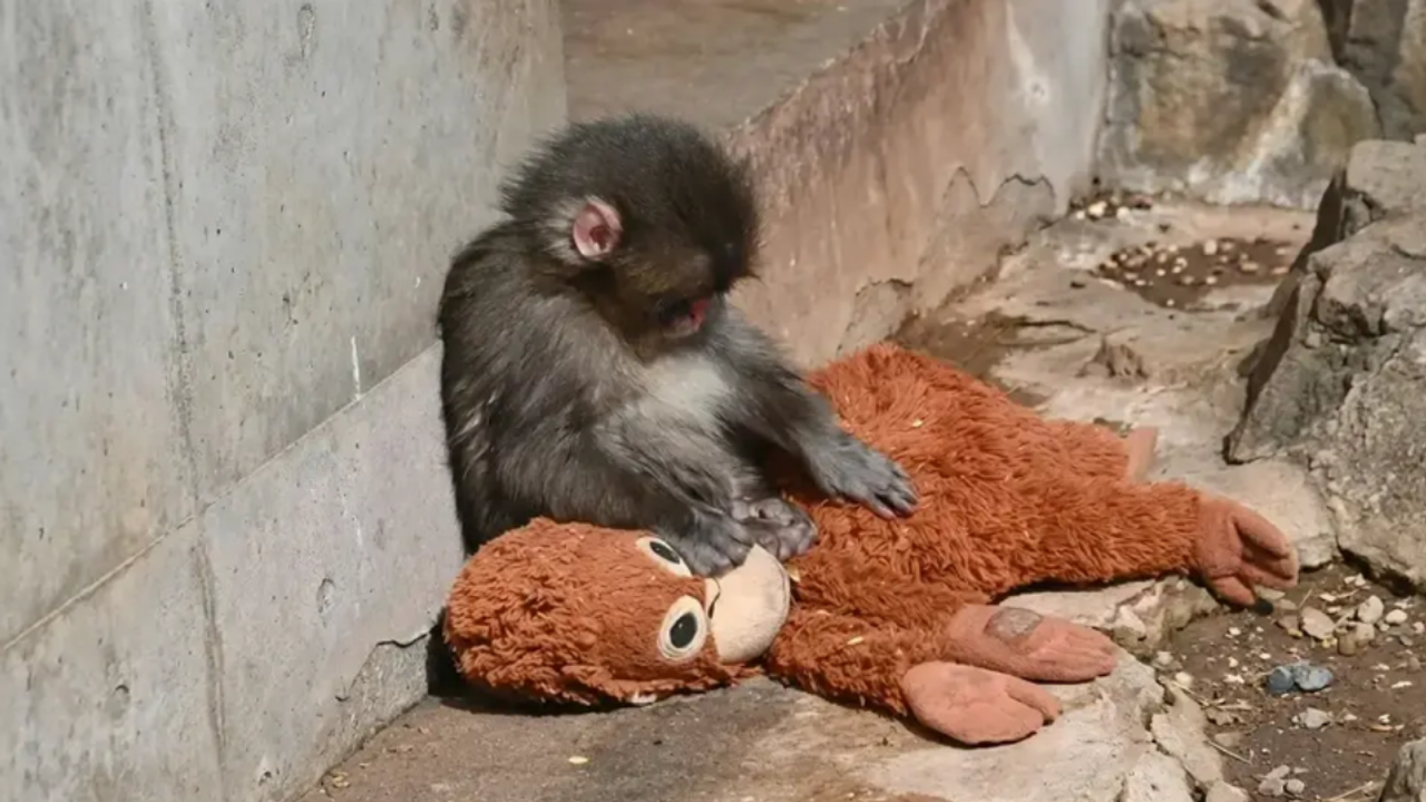 Punch'ın yanından hiç ayırmadığı peluşa sarıldığı görüntüler, internette viral oldu.