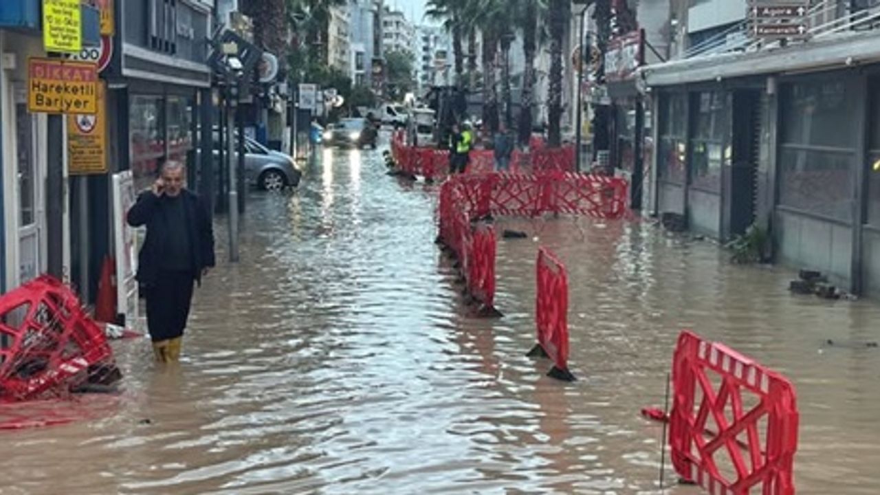 Sevgililer Günü’ne 1 gün kala İzmir’in en canlı ve yoğun bölgelerinden biri olan Alsancak’ta aşırı yağış nedeniyle caddeler göle döndü.