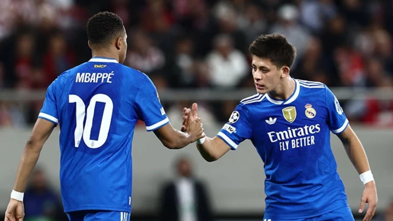 Milli futbolcu Arda Güler'in forma giydiği Real Madrid, deplasmanda Olympiakos'u Kylian Mbappe'nin attığı 4 golle 4-3 yendi. Mücadelede 61 dakika sahada kalan Güler, Mbappe'nin attığı ikinci golün pasını verdi. Ev sahibi takımın gollerini, Chiquinho, Mehdi Taremi ve Ayoub El Kaabi kaydetti.