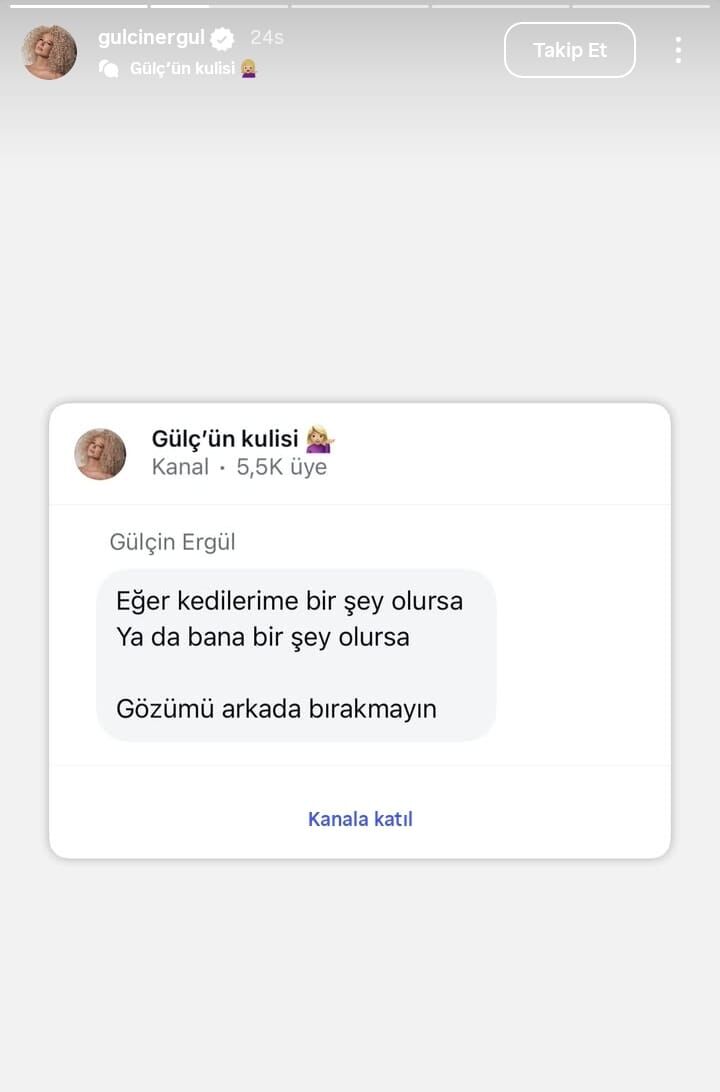 Yaşadığı olayın ardından bir açıklama daha yapan Ergül, sürecin kendisini olumsuz etkilediğini ifade etti. Gülçin Ergül, yaptığı son paylaşımda destek çağrısını yineleyerek dikkat çeken ifadeler kullandı. “Bugün güvensiz durumlarda kalan başka bir kadın olarak korunmaya ve desteklenmeye ihtiyaç duyuyorum. Eğer kedilerime ya da bana bir şey olursa gözümü arkada bırakmayın” sözleriyle takipçilerine seslendi.