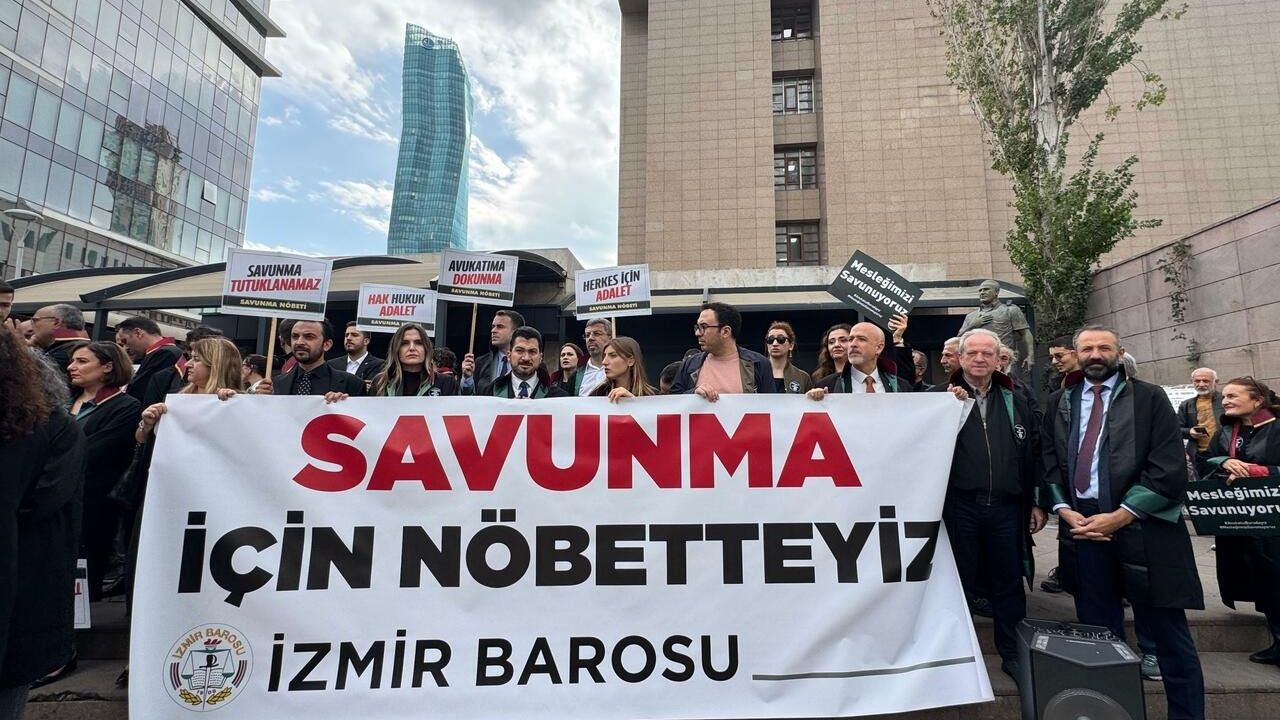 Türkiye’nin farklı illerinden gelen baro başkanları ve avukatlar, "Savunma Nöbeti" kapsamında İzmir Adliyesi önünde bir araya gelerek yargı bağımsızlığı, ifade özgürlüğü ve hukuk devleti ilkesine yönelik baskı ve ihlallere karşı açıklama yaptı. İzmir Barosu Başkanı Sefa Yılmaz, "Artık ülkemiz parmaklıklarla çevrilmiş bir cezaevi. Fikriniz muktedirle aynı değilse her an gözaltına alınabilirsiniz. Faşizm konuşma yasağı değil, söyleme mecburiyetidir" derken, baro başkanları da savunma mesleğinin susturulmasına karşı “Her platformda hukukun üstünlüğünü, demokrasiyi ve adaleti savunmaya devam edeceğiz" ifadesini kullandı.
