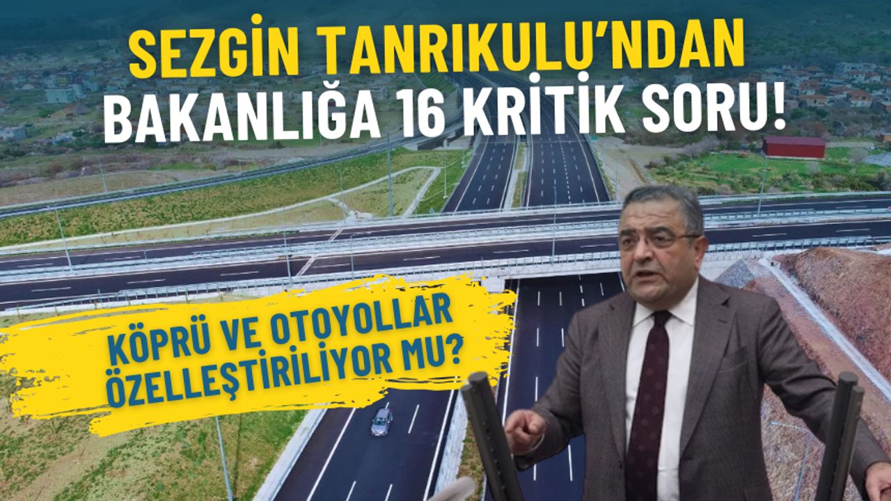 CHP Genel Başkan Yardımcısı ve Diyarbakır Milletvekili Sezgin Tanrıkulu, Ulaştırma ve Altyapı Bakanı Abdülkadir Uraloğlu’nun yazılı olarak yanıtlaması istemiyle Türkiye Büyük Millet Meclisi Başkanlığı’na soru önergesi sundu. Önergede köprüler ve otoyollarla ilgili sözleşmeler, teknik incelemeler ve olası özelleştirme sürecine ilişkin iddialar yer aldı.