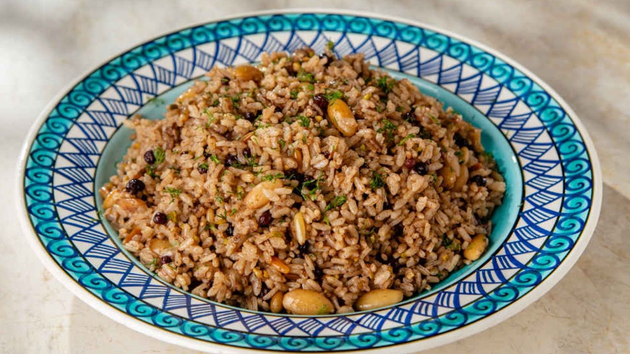 -Kuş üzümü, fıstık, et suyu, yenibahar ve karabiber malzemelerinizi de ekleyip su kaynayıncaya kadar pişirin. Kapağını kapatıp ocağı kısın ve pirinç suyunu çekene kadar kısık ateşte pişirin.