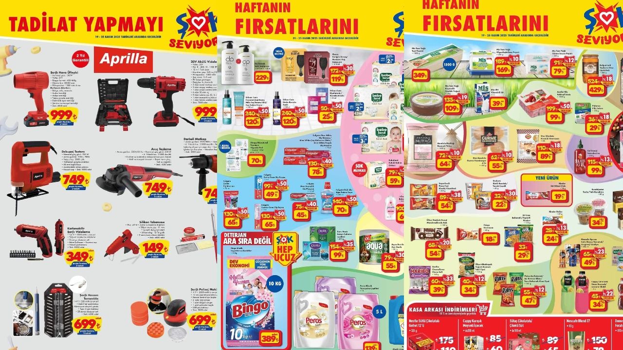 Türkiye'nin dört bir yanında binlerce mağazası bulunan ŞOK yeni kataloğunu yayınladı. ŞOK'a gelen yeni ürünler 19 Kasım ile 25 Kasım tarihleri arasında satışa çıkıyor. ŞOK'a bu kez; Aprilla şarjlı hava üfleyici, kurutma makinesi, Stanley eksantrik zımpara makinesi, buzdolabı, çamaşır makinesi, bulaşık makinası gibi ürünler geliyor.