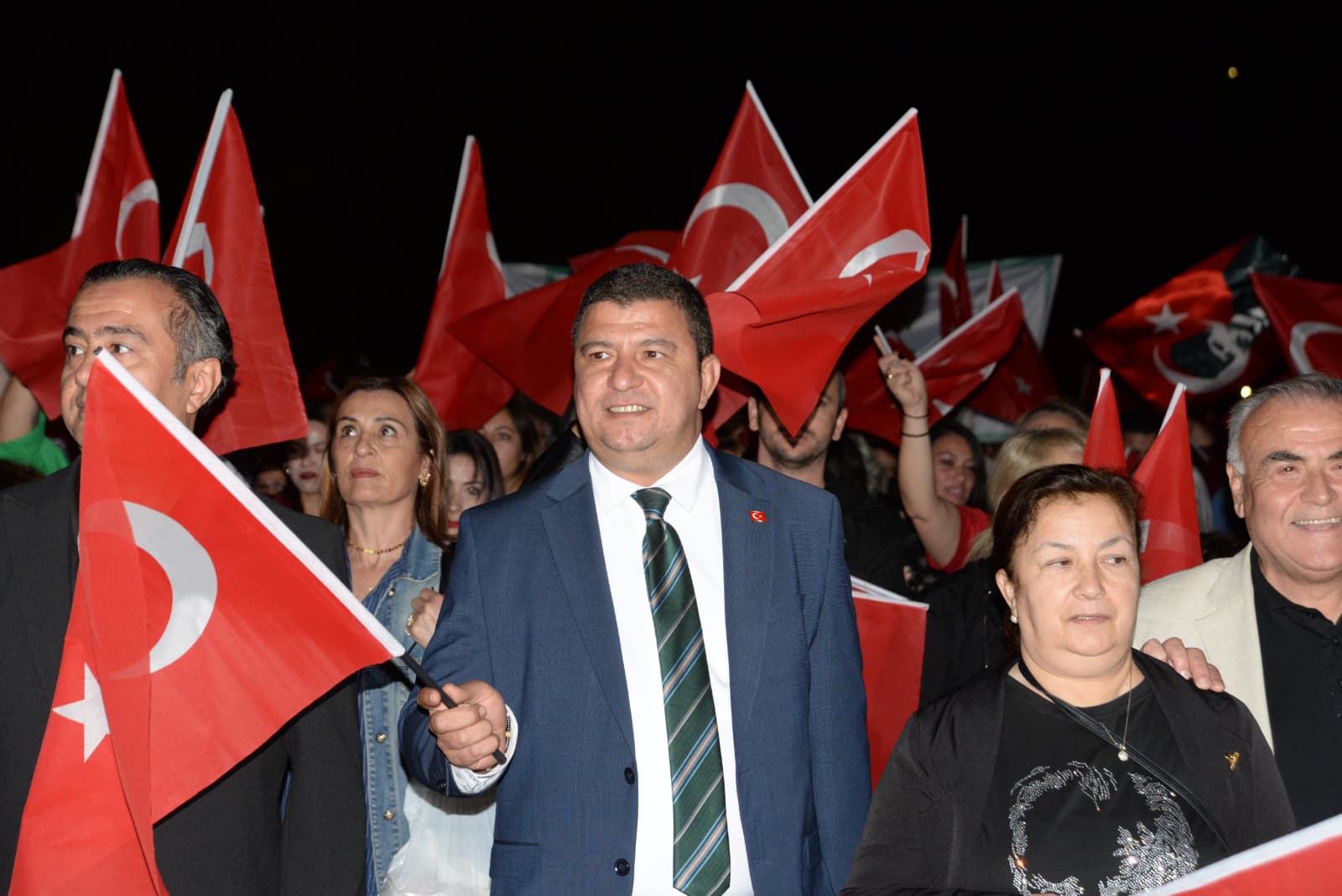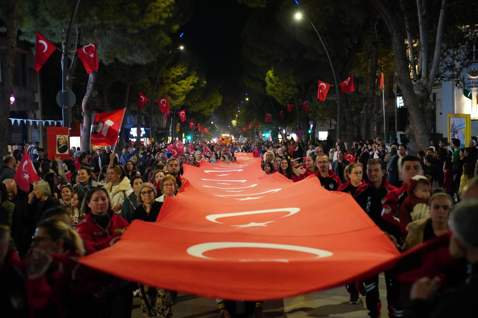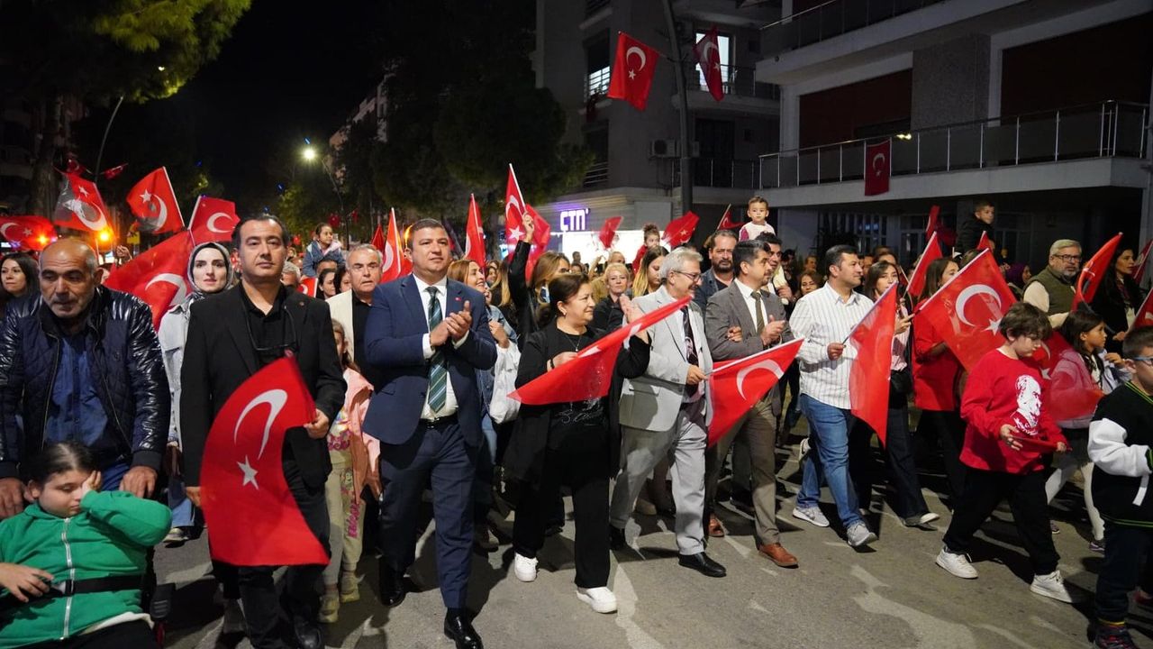 Tire Belediye Başkanı Hayati Okuroğlu’nun çağrısıyla 29 Ekim Cumhuriyet Bayramı akşamı, Şehit Fırat Yılmaz Çakıroğlu Üstgeçidi altında toplanan Tireliler, buradan Tire Belediye Bandosu’nun çaldığı marşlar eşliğinde yürüyüşe geçti. Yürüyüşe Belediye Başkanı Hayati Okuroğlu, Başkan Yardımcıları ve meclis üyeleriyle birlikte, ilçede faaliyet gösteren STK’lar ve binlerce vatandaş katıldı.