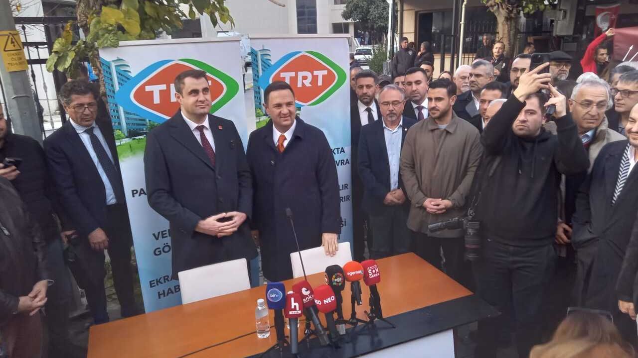 Biz Çağatay Başkan'la aynı yıl doğumluyuz. 1986 doğumluyuz. Bizim çocukluğumuza da yetişti bu. Televizyon çalışmadığı zaman veya bir elektronik eşya çalışmadığı zaman iki şey yapardık. Ya fişini söküp yeri takardık ya da tepesine vururduk. İşte biz bugün buraya TRT'nin tepesine vurmaya geldik. Değerli dostlarım, kamu yayıncılığını bırakan TRT, padişahım çok yaşacılık yapıyor. Kamu yayıncılığını bırakan TRT saray yalancılığı yapıyor. Kamu yayıncılığını bırakan TRT iktidar yalakalığı yapıyor. Açık açık, bunu hiç lafı dolaştırmaya gerek kalmadan açık bir şekilde söylüyorum. Ben TRT'ye İstanbul ve Ankara'da yaptığım çağrıyı bir kez de TRT İzmir'in önünden yapmak istiyorum. Ey TRT; çok yüksek teknolojiye sahip olduğunu, 19 kanal kurduğunu, dünyanın her yerine ulaştığını HD yayınlar yaptığını söylüyorsun. Ancak TRT'nin içi boşaldı bitti. Ve onun için TRT'ye diyorum ki gerekirse siyah beyaz yayın yap, onurlu yaşa kardeşim. Siyah beyaz yayın yap ve onurlu yaşa” diye konuştu