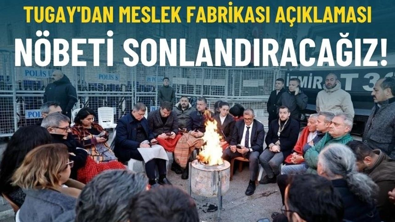 Meslek Fabrikası nöbetinin kademeli bir şekilde sonlanacağını ifade eden Tugay, “Daha önce yaptığım açıklamada da belirttiğim gibi, nöbeti belediyedeki çalışmaları aksatmadan sürdürmemiz gerekiyor. Bu nedenle nöbet sistemini kademeli olarak sonlandıracağız. Bu, asla takibi bırakacağımız anlamına gelmiyor. Her şeyden önce amacımız, insanların neden itiraz ettiğimizi anlaması. Bu konuda önemli bir mesafe kat edildiğini görüyoruz” ifadelerini kullandı.