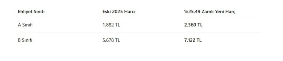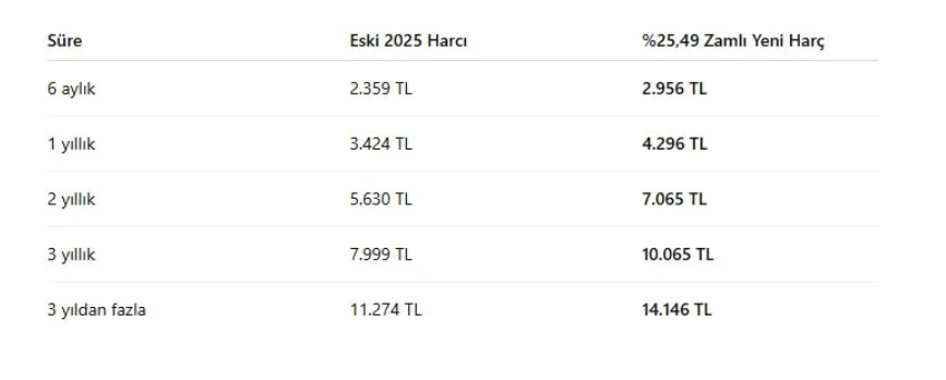 2026 yılında pasaport defter bedeli ve ehliyet harçları da yüzde 25,49 oranında artacak. Yeni yılda geçerli olacak güncel fiyatlar şöyle olacak: