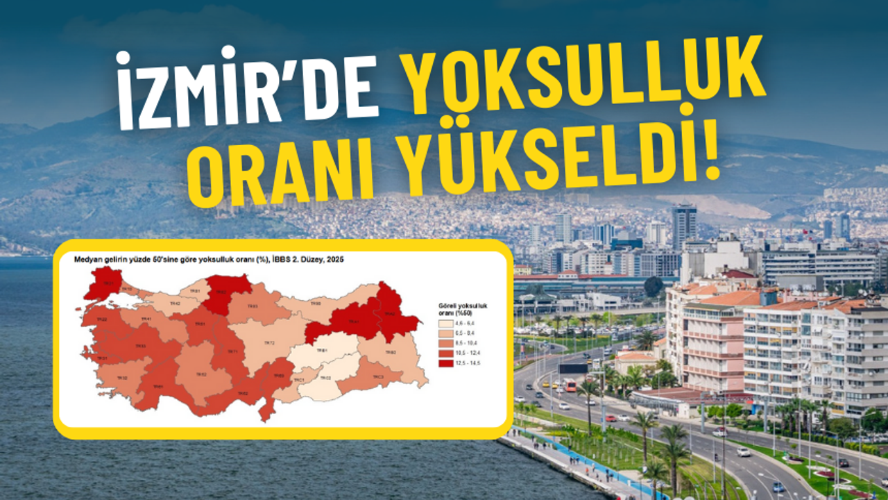 TÜİK verilerine göre medyan gelirin yüzde 50’si esas alınarak hesaplanan yoksulluk sınırı İzmir için 139 bin 752 TL olarak belirlendi. Bu hesaplamaya göre İzmir'de 471 bin kişi yoksulluk sınırının altında kaldı. 2024 yılında bu sayı 446 bin olarak kaydedilmişti. Nüfusa oranla yoksulluk oranı ise 2025 yılında yüzde 10,7 oldu. Söz konusu oran 2024’te yüzde 10,1 seviyesindeydi.