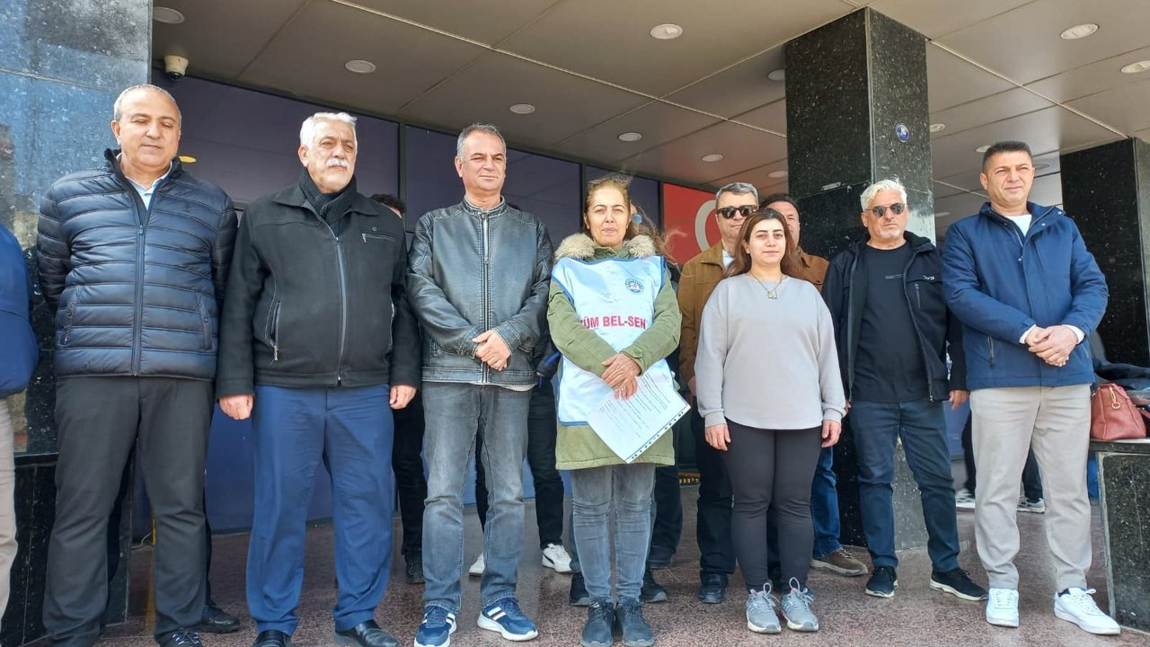 Belediye önünde açıklamada bulunan Tüm Bel Sen İzmir 2 No'lu Şube İdari Sekreteri Nurcan Hükenek, 2024 ve 2025 yıllarına ait eğitim yardımları, arazi tazminatları ile 7 aydır toplu iş sözleşmesi ücretlerinin ödenmediğini belirtti.