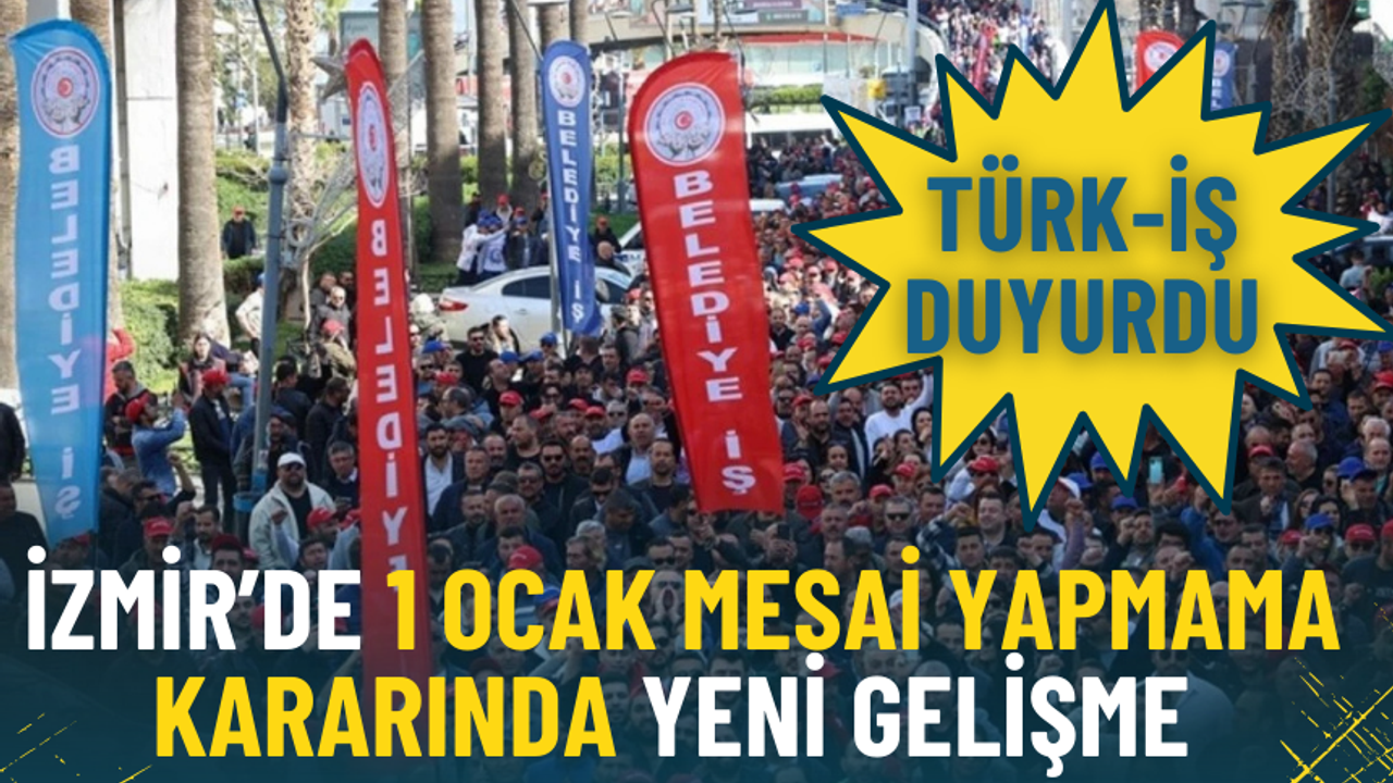 İzmir Büyükşehir Belediyesi iştiraklerinde örgütlü sendikaların aldığı mesai yapmama ve basın açıklaması kararlarının iptal edildiğini kamuoyuna duyuran TÜRK-İŞ yaptığı açıklamada şu ifadelere yer verdi: “İzmir Büyükşehir Belediyesi iştiraklerinde örgütlü Sendikalarımızın almış olduğu 01.01.2026 tarihinden itibaren mesai muafakatnamesi vermeyip mesaiye yapmayacakları ve 2026 yılının ilk haftasında düzenlenecek kitlesel Basın Açıklaması kararları, üyelerimizin alacaklarının bir kısmının İzmir Büyükşehir Belediyesi tarafından bugün hesaplarına yatırılacak olması nedeniyle iptal edilmiştir. Kamuoyuna saygıyla duyurulur.”