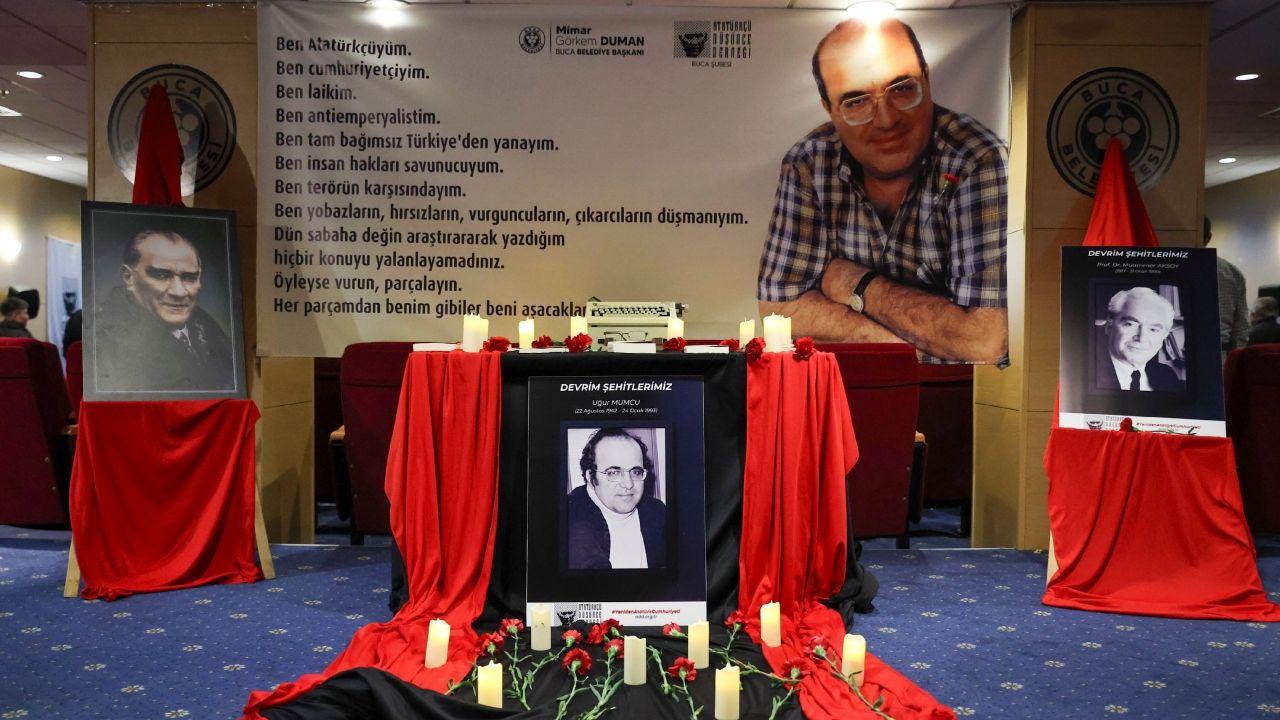 ADD Buca Şube Başkanı Erkan Çiçek ise Türkiye’nin aydınlanma mücadelesinin hâlâ sürdüğünü belirterek, şöyle dedi: “Uğur Mumcu yalnızca bir gazeteci değildi. O, Atatürk cumhuriyetinin yılmaz bir savunucusuydu; gerçeğin peşinde korkusuzca yürüyen, karanlığa karşı kalemiyle ışık tutan bir aydındı. Susturulmak istenen yalnızca bir insan değil bir düşünceydi. İnsanları öldürebilirsiniz ama fikirlerini asla çünkü fikirler kurşun geçirmez. Atatürk’ün yolunda yürüyenler var oldukça cumhuriyet sahipsiz kalmayacaktır.”