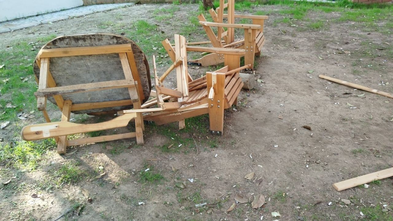 Konak Belediyesi’nin titiz çalışmayla yenilediği Şehit M. Yüce Sonkurt Parkı, gece saatlerinde vandalların hedefi oldu. Parkın içindeki el emeğiyle üretilmiş banklar tamamen parçalanırken, yetkililer hızlı müdahaleyle yeni bankları monte etti.