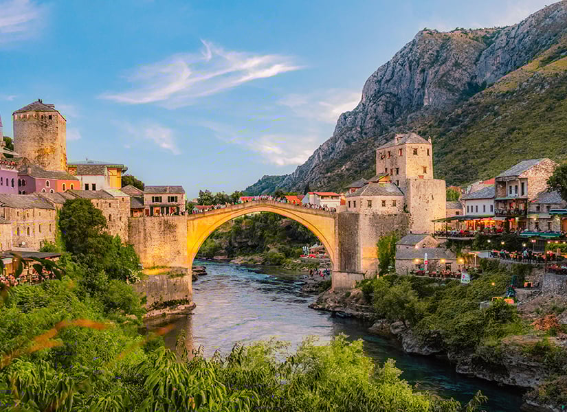 2. Bosna Hersek: Türkiye ile sağlam tarihi ve kültürel bağları olan Bosna, Doğu Karadeniz’i hatırlatan bitki örtüsü ve iklimiyle öne çıkıyor. Yakın tarihte yaşanan savaşların yaralarını yeni yeni sarmaya başlayan bu eski Yugoslavya cumhuriyeti, Osmanlı ve batı mimarisinin bir karışımı gibi görünen özgün şehirleri ve Mostar Köprüsü gibi çok sayıda tarihi değeriyle gezginlerin çok tercih ettiği Avrupa rotalarından biri.